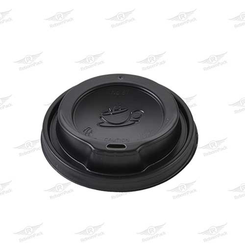 Μαύρο καπάκι πλαστικό με πιπίλα για χάρτινα ποτήρια ζεστού ροφήματος.