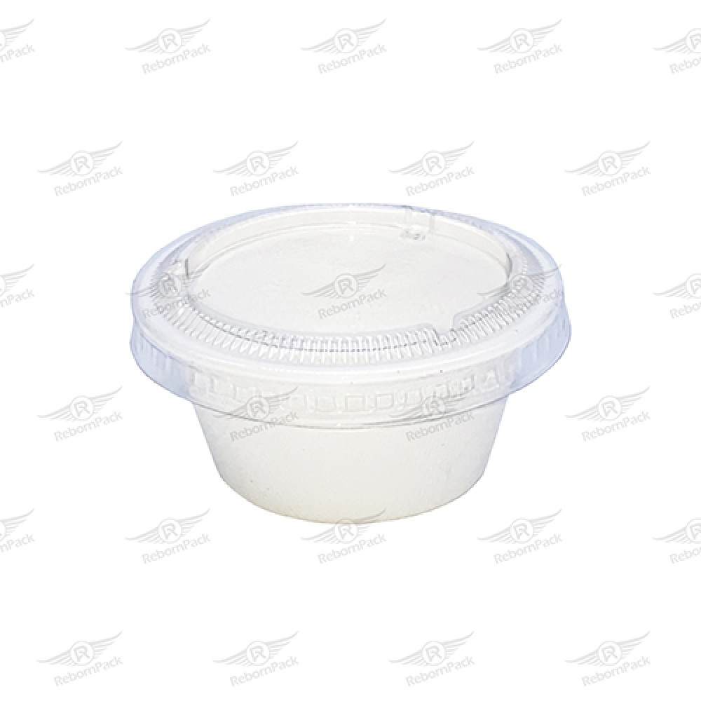 Οικολογικό σκεύος για sauce από ζαχαροκάλαμο, σε λευκό χρώμα, 4oz + αποσπώμενο ζαχαροκάλαμο καπάκι.