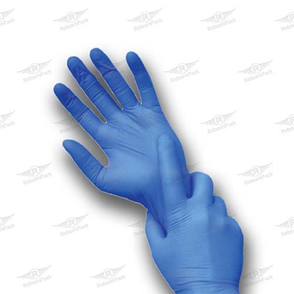 Μπλε γάντια νιτριλίου, μιας χρήσης, χωρίς πούδρα.